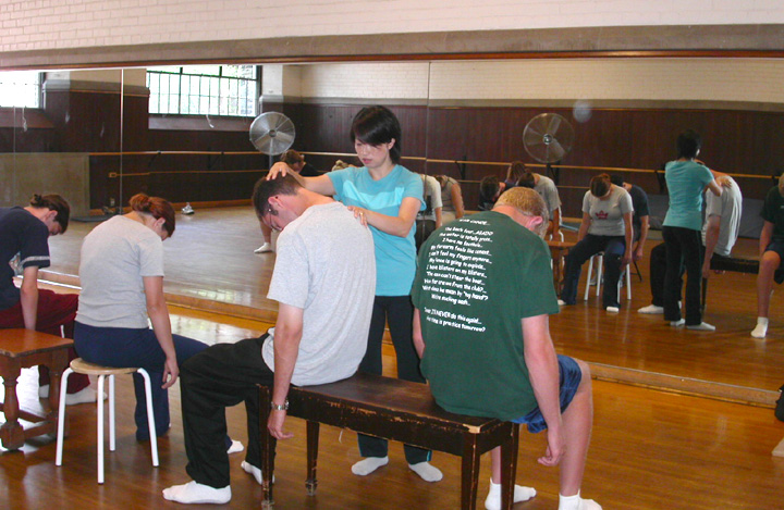 グループレッスンでは、ミツヴァテクニックの本来の目的を理解する為に、体の間違った使い方がどのような弊害をもたらすかを学びます。いくつかの基本動作を練習することによって、これまで気付いていなかった自分の体の癖を見つけ、それを改善する方法を学習します。自分の体と対話することで、様々な体の不調を、自身の力で修正し、良い姿勢を習得していくことを目指します。
